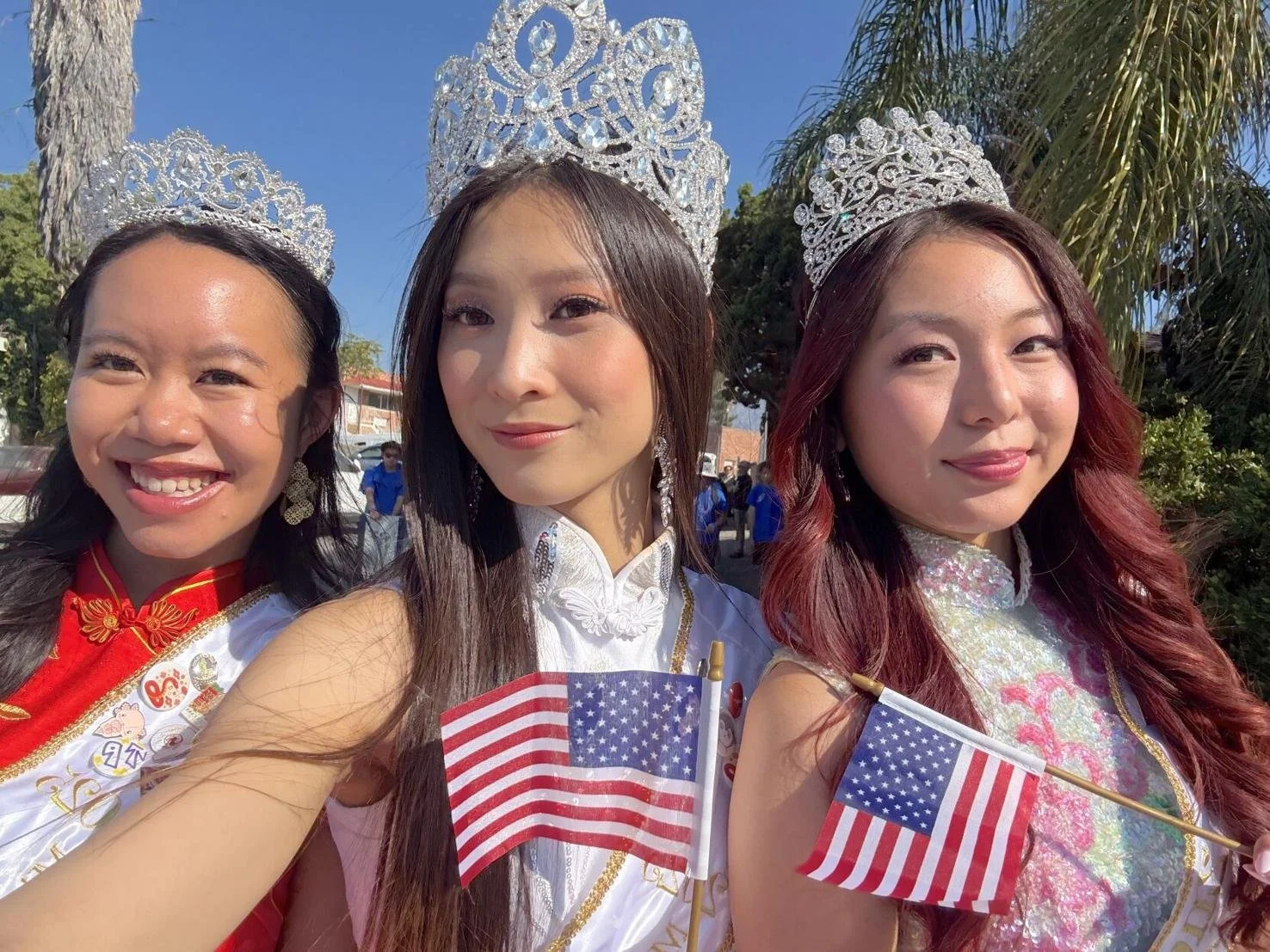 Photo courtesy Koh family / The 2025 Miss Los Angeles Chinatown court participated in San Marino’s Fourth of July parade, including fourth Princess Terena Phan, Queen Nina Koh and second Princess and Miss Friendship Jennitine Chang.